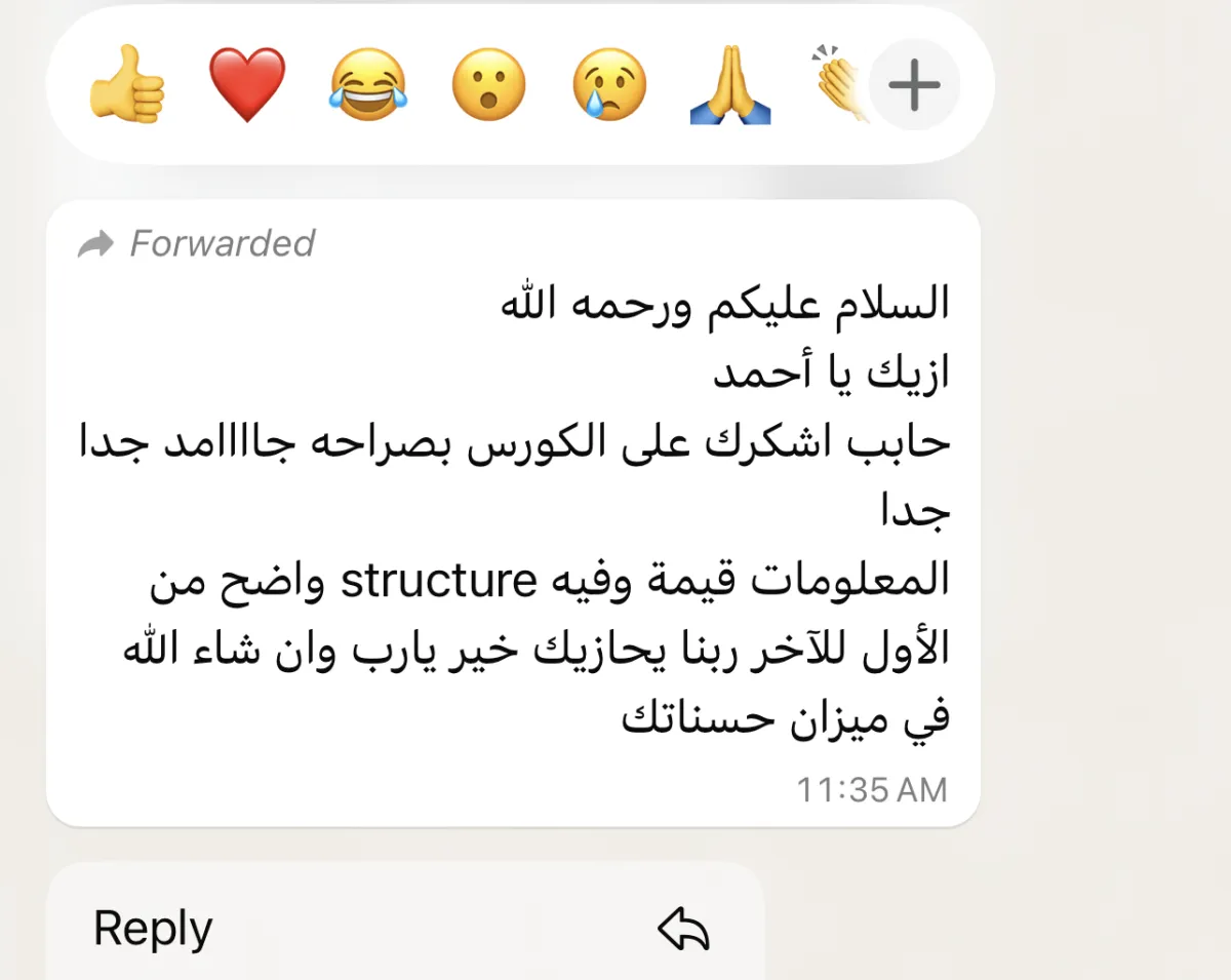 كل المفاهيم بتتشرح من البداية، لكن بأسلوب محترف وبأمثلة من أرض الواقع تخلي المعلومة سهلة وواقعية حتى لو أول مرة تشتغل في المجال.