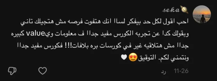 استرجع كامل المبلغ لو حسيت إن الكورس مش مناسب ليك خلال أول يوم من الاشتراك.